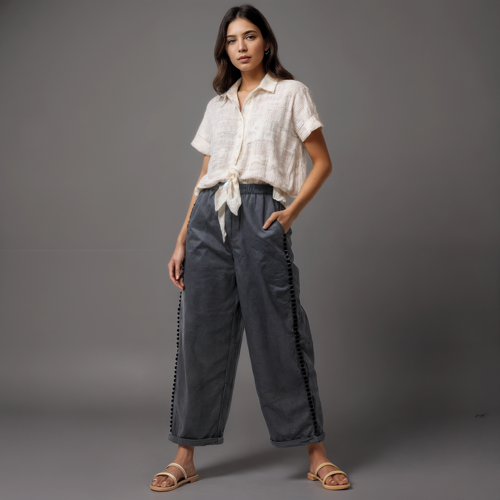 Elegância e conforto em cada passo. A Calça Feminina Jasmine foi feita para quem valoriza leveza, praticidade e um toque de sofisticação no dia a dia. Com caimento fluido e sensação agradável ao vestir, ela acompanha a rotina com conforto e versatilidade — do casual ao mais arrumado, sem esforço.