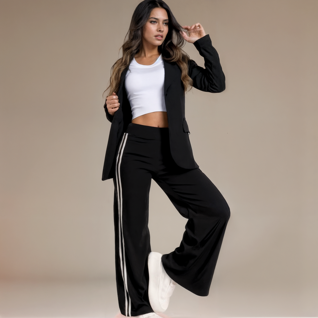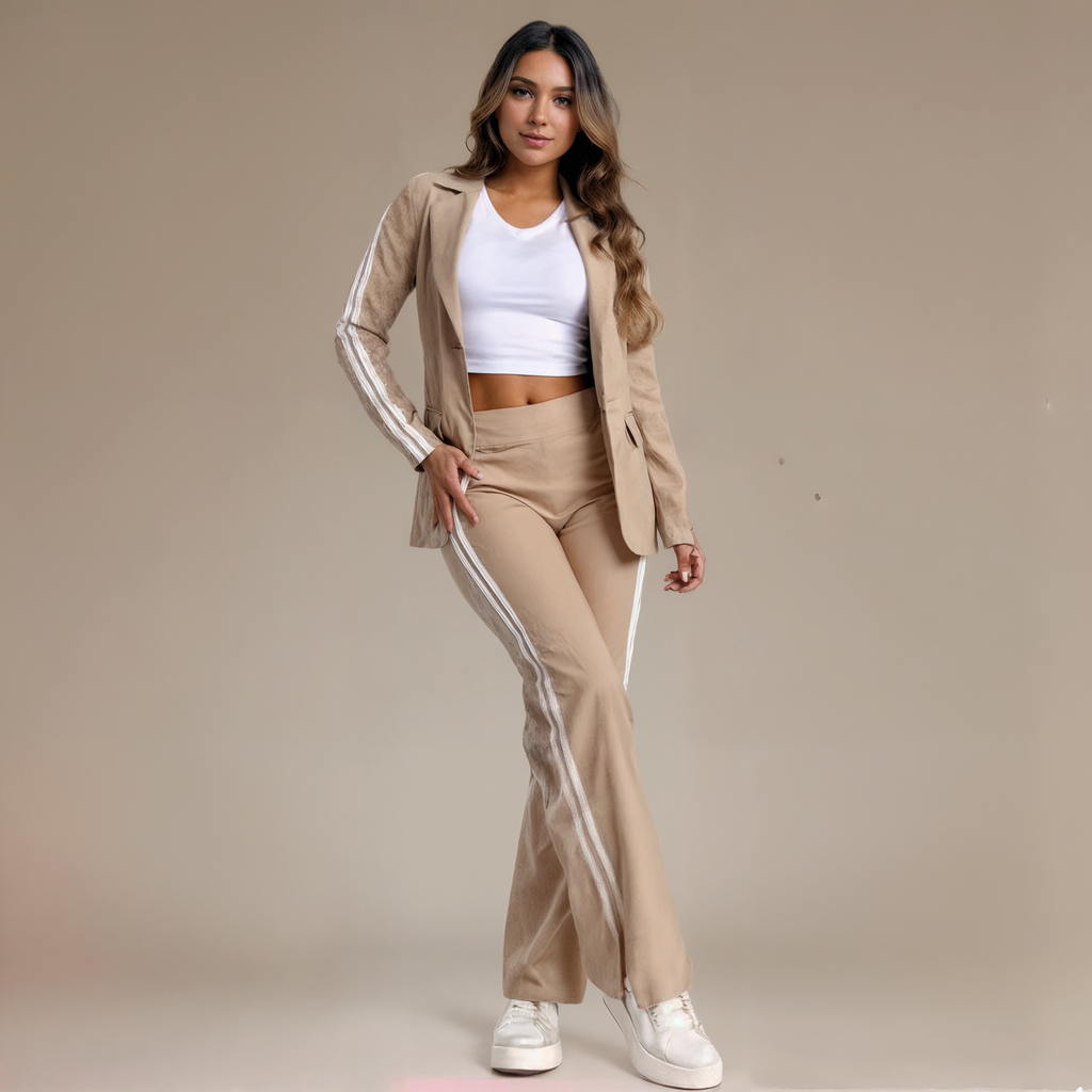 Elegância e conforto em 2 peças versáteis. O Conjunto Ravena combina um casaquinho de caimento leve com uma calça que valoriza a silhueta, para um visual impecável do dia a dia a ocasiões especiais.