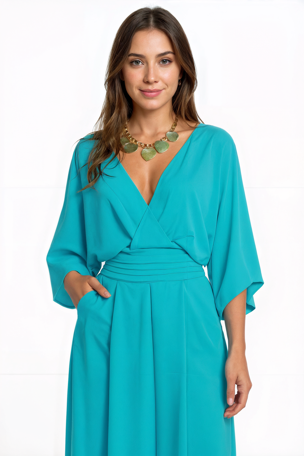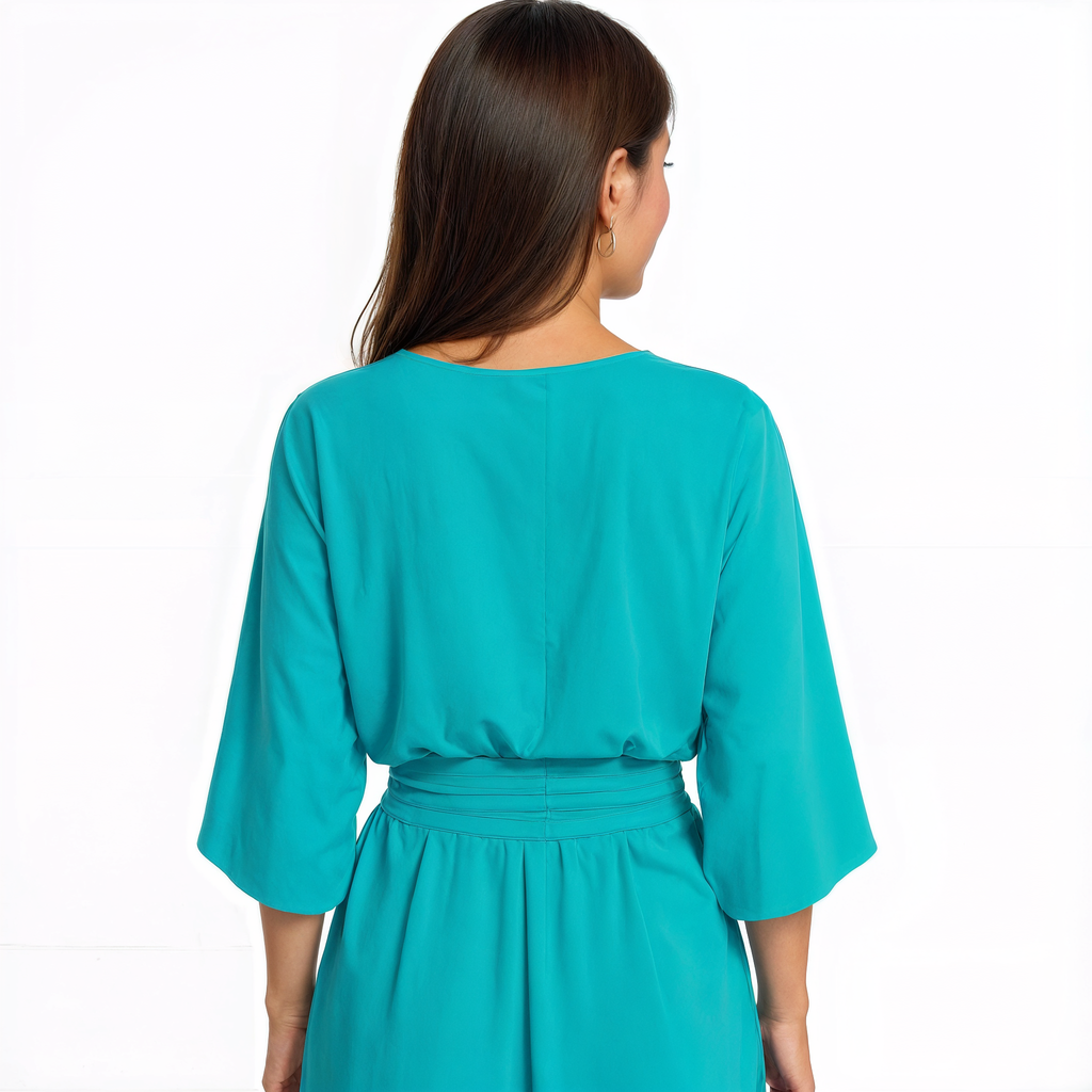- Decote em V que valoriza a silhueta com delicadeza