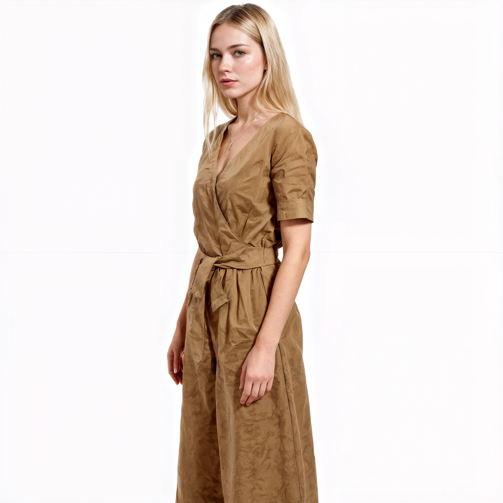 - Cintura com amarração para ajuste e acabamento mais elegante